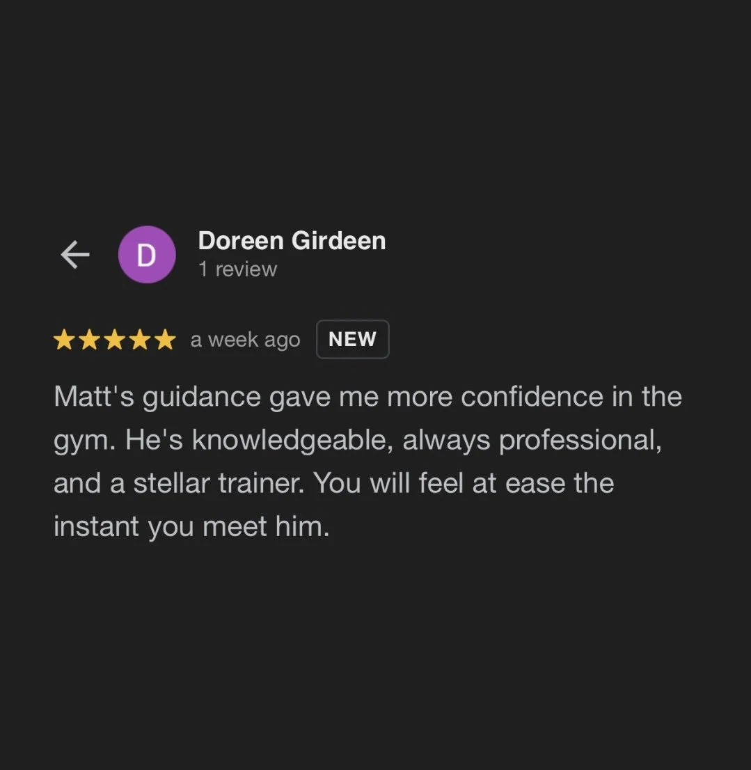 Matthew is a wonderful trainer! Myself and both my teenage sons work with him and are achieving our goals! He has the best knowledge and skills to personalize your nutrition and training to be successful and get results. Plus he has had the best personality it's always a pleasure to train with him. Highly recommend.